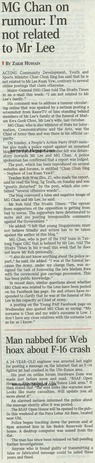 This ROE guided this posting on 30 September 2010. The flash message could have gone out faster but time was needed to verify information that trickled in to build an appreciation of situation. The risk of a miscomm was managed by having a network of military nuts who can report concisely what they see and understand the difference between observation and opinion. This network of plane spotters is credited for two scoops published by the 90 cents newspaper - the 1 April 2005 story on the A-4 Skyhawk last flight (see here) and the airspace intrusion by the Cessna seaplane. Ironically, after all the effort, some readers thought the 1 April Skyhawk story was an April Fool hoax. Please read more about plane spotters here.